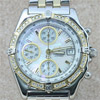 The Chronomat GT is recognizable by the extra thick bezel that surrounds the subdials. Unlike the later Chronomats, the GT Chronomats do not have numbers printed on the bezel, but rather on the subdial.