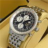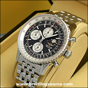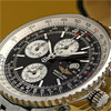 Constituting Breitlings's flagship product, the Navitimer line symbolizes the brand's mastery in the field of mechanical chronographs. Among these instruments with a wealth of tradition, originality and exclusive features, the Navitimer Olympus represents the world of watch Complications. Its mechanism composed of around 250 parts enables measurement of short times and simultaneous display of the date, day, month and moon phases. This sophisticated movement, chronometer-certified Caliber 19, requires adjustment only once every leap year. The generously sized Navitimer Olympus allows perfect read-off of the plentiful data provided by the dial and its nine hands. The caseback carries a conversion scale for the weights and measures used in aviation.