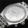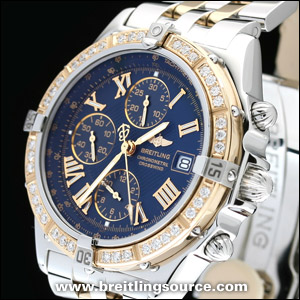 Definitely upmarket in character and imposing in size, the Crosswind super chronograph asserts its dominance of the Windrider range. Designed, built and finished with exceptional care and competence, its sophisticated craftmanship is matched only by the luxury of every detail, not least its elaborate raised dial face, all of whose six hands and even Roman numerals are luminous. For all its lavish detailing, the Crosswid remains a thoroughbred Breitling design, with the sturdiness and operational excellence of a dependable instrument watch.
